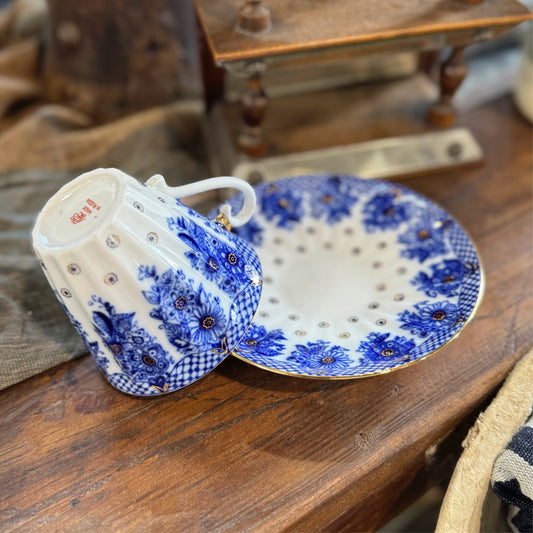 Antique Imperial Russian Lomonosov Blue White Porcelain Cup & Saucer