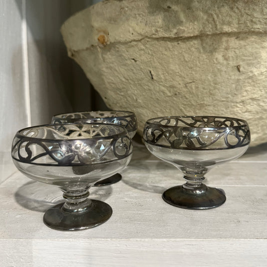 Antique Art Nouveau Sterling Silver Overlay Sherbet Glasses, set of 3