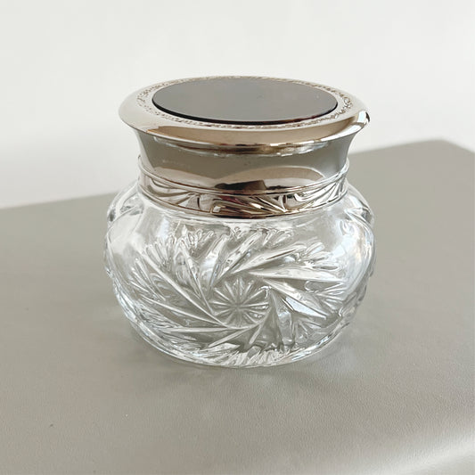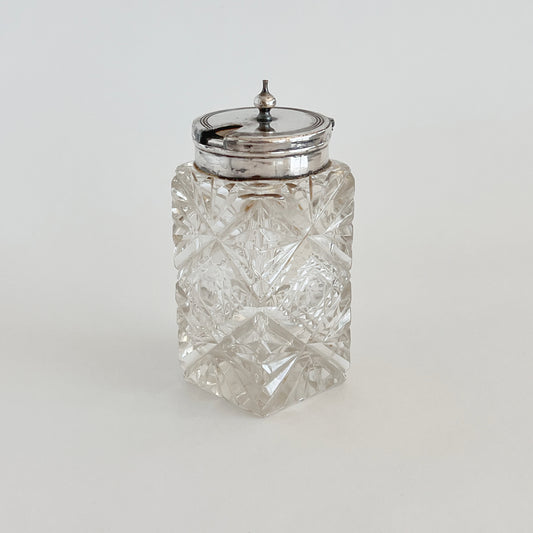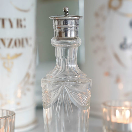 English antique Edwardian lady’s traveling bottle with silver-plated lid