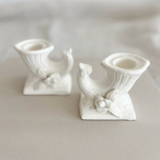 Vintage Cornucopia Horn of Plenty Candlestick Holders, pair