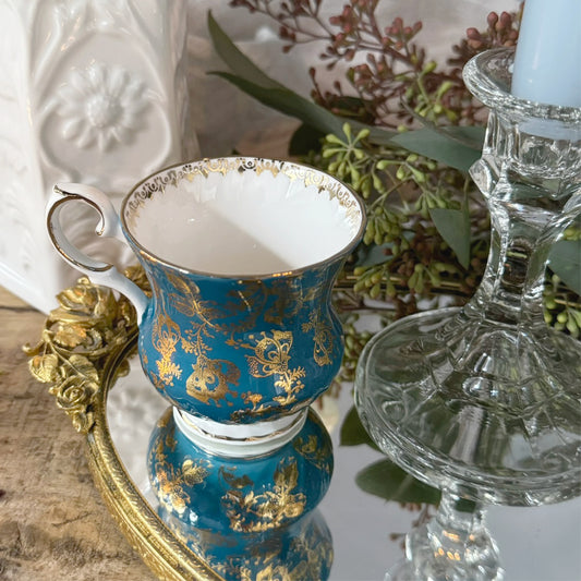 Vintage Excelsior Porcelain Gravy Boat with Green Ivy Details