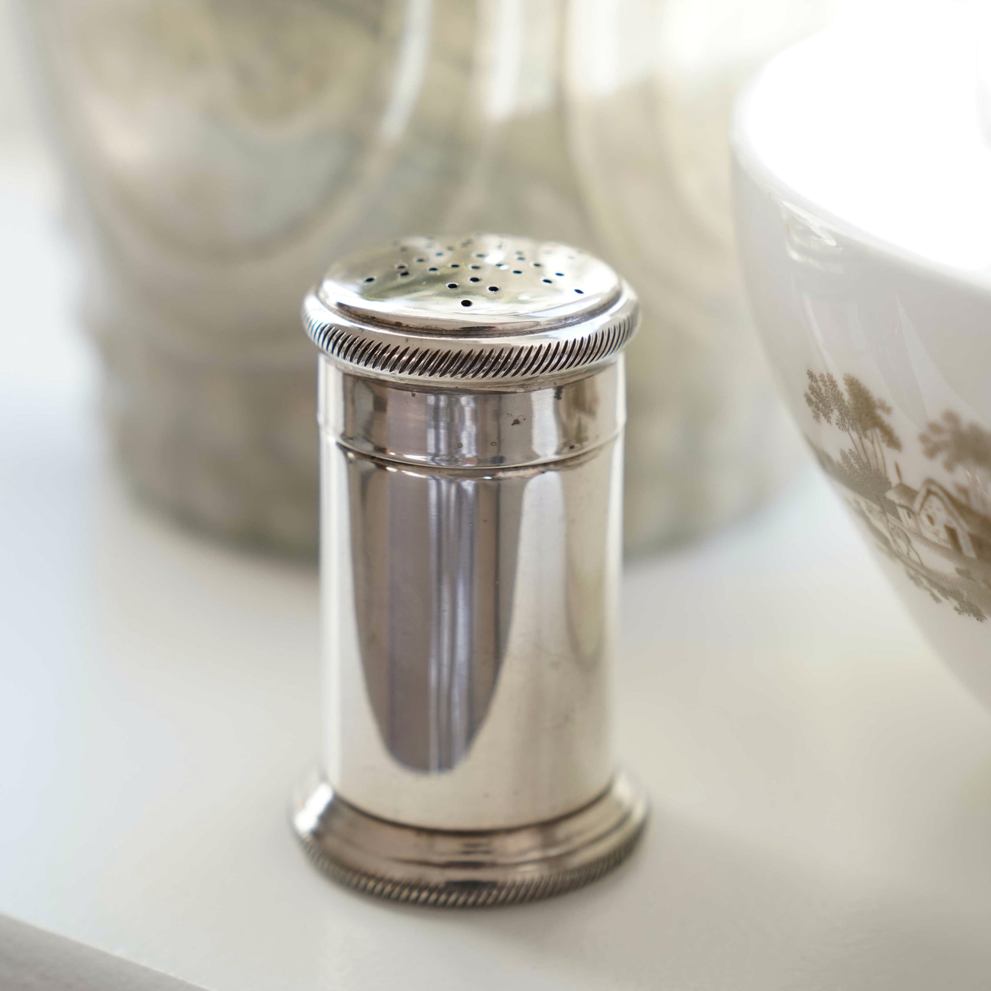 English antique London Company of Goldsmiths and Silversmiths silver-plated pepper pot.